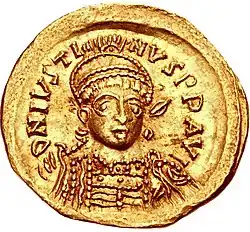 O Imperador Justino I representado em um soldo