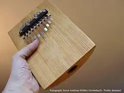 A Kalimba ou Mbira é um instrumento musical pertencente à família dos lamelofones, sendo da categoria dos idiofones dedilhados. Os primeiros lamelofones surgiram no Vale de Zambeze, próximo ao atual Zimbábue, na África Subsaariana. Eram feitos de materiais como madeira da palmeira de ráfia e outras matérias vegetais; datam de cerca de 1000 a.C. Posteriormente, se espalhou pela África, desenvolvendo características diferentes, como o número de teclas e se são utilizados materiais acoplados às teclas para alterar o som.[1]