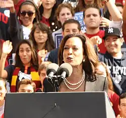 - ↑ Christopher Cadelago (21 de janeiro de 2019). «Kamala Harris launches campaign for president». Politico. Consultado em 3 de março de 2019