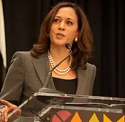 Kamala Devi Harris (Oakland, 20 de outubro de 1964) é uma advogada e política estadunidense, tendo servido como a 49.ª Vice-presidente dos Estados Unidos. Filiada ao Partido Democrata, foi senadora dos Estados Unidos pela Califórnia de 2017 a 2021, e 32.ª Procuradora-Geral da Califórnia de 2011 a 2017, tendo sido a primeira mulher procuradora-geral do estado. Foi ainda a primeira senadora e vice-presidente de origem indiana e afro-americana. Harris foi a candidata democrata na eleição presidencial de 2024.