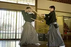 Alguns estilos praticam também corte (tameshigiri e suemonogiri) com shinken(espada de metal com corte).
