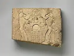 - ↑ «Relief panel showing two baboons offering the wedjat eye to the sun god Khepri, who holds the Underworld sign». The Metropolitan Museum of Art