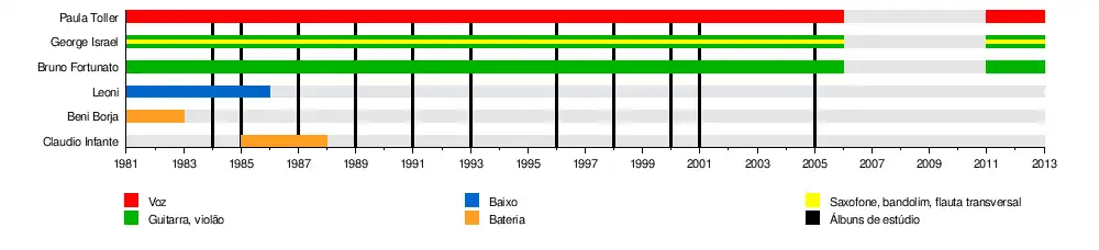 - George Israel – saxofone, guitarra, violão, bandolim, flauta transversal (1981–2013)