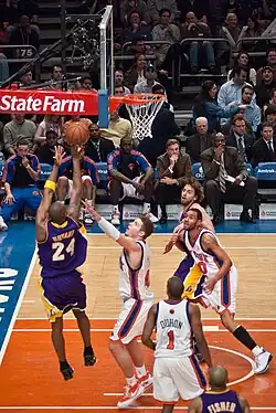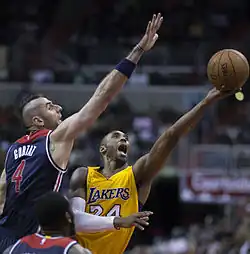 Kobe Bean Bryant (Filadélfia, 23 de agosto de 1978 — Calabasas, 26 de janeiro de 2020)[1] foi um jogador profissional de basquetebol estadunidense. Jogou toda sua carreira como ala-armador no Los Angeles Lakers da National Basketball Association (NBA). Filho de Joe Bryant, ex-jogador do Philadelphia 76ers e antigo técnico do time Los Angeles Sparks da WNBA, é considerado um dos maiores jogadores de todos os tempos.[2][3][4][5] Por outro lado, críticos alegam suas baixas porcentagens de arremessos de campo, de dois e três pontos (ao longo de sua carreira, teve média de 44% em arremessos de dois e 32% em triplos, que até caem nos playoffs), que fazem dele o jogador com mais arremessos perdidos na história da NBA: 14 481 arremessos de campo perdidos na temporada regular (marcou 11 719 de um total de 26 200 arremessos) e 2 485 (marcou 2 014 de um total de 4 499 arremessos nos playoffs), totalizando 16 966 arremessos perdidos.[6]