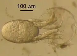 - ↑ Shields, J.D.; Gómez-Gutiérrez, J.: Oculophryxus bicaulis, a new genus and species of dajid isopod parasitic on the euphausiid Stylocheiron affine Hansen, Int'l J. for Parasitology 26(3), pp. 261 – 268; 1996.