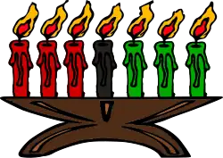 ![]() Sete velas num kinara simbolizam os sete princípios do Kwanzaa. | |