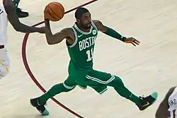 Em julho de 2017, Irving pediu aos Cavaliers para negociá-lo, supostamente querendo ser a única estrela da equipe, em vez de continuar a jogar ao lado de LeBron James.[77][78] No mês seguinte, em 22 de agosto, ele foi negociado para o Boston Celtics em troca de Isaiah Thomas, Jae Crowder, Ante Žižić e uma escolha do draft de 2018.[79] Oito dias depois, os Celtics concordou em enviar aos Cavaliers uma escolha de segunda rodada do Draft de 2020 para completar a troca, como compensação pelo estado físico de Thomas.[80]