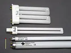A lâmpada fluorescente não deve ser colocada no lixo comum, nem em aterros sanitários, porque possui mercúrio (elemento químico) e fósforo na sua composição. É classificada como contaminante químico. Caso tenha destino inadequado, a lâmpada fluorescente pode poluir o ar, solo, lençóis freáticos, rios, chuvas, animais e o homem, comprometendo a cadeia alimentar. Deve ser destinada a empresas de reciclagem.[1]