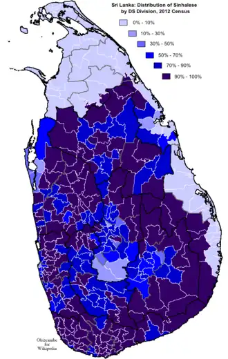 O cingalês também tem minorias (cerca de 2 milhões de falantes) espalhadas por outros países, em especial em países próximos e no Oriente Médio.[12]