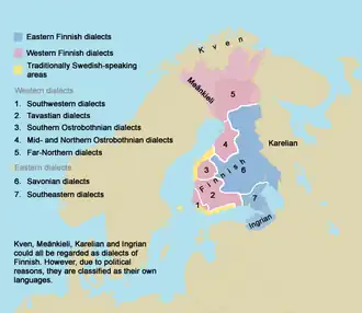 Os dialetos da língua finlandesa pertencem a dois grupos:[2][3]