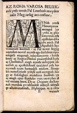 Uma página do primeiro livro totalmente em húngaro, em 1533