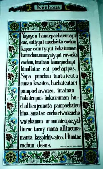 | Falado(a) em: | Peru, Bolívia, Equador, Chile, Colômbia, Argentina | |
