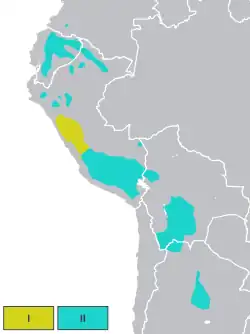 - II-B: quíchua nortenho (em quíchua: runasimi ou kichwa, no Equador), falado na Colômbia, no Equador e nas terras de planície na Amazônia peruana e equatoriana.