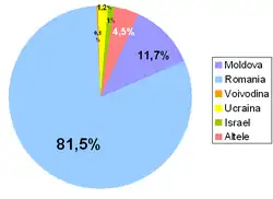 | Moldávia ² | 64.5% | 3,483,600 | 4,430,654 |