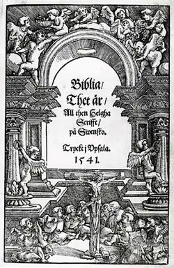 - ↑ Bergman, Gösta; et al. (1971). «Vårt språks historia». Vårt språk (em sueco). Estocolmo: Svenska Bokförlaget. p. 187-200. 284 páginas. ISBN 91-24-10178-8