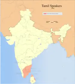 A Língua tâmil[8] (தமிழ் Tamiḻ Pronúncia tâmil: [t̪amiɻ] (ⓘ)) ou tâmul é uma língua dravídica falada por cerca de 68 milhões de pessoas[9] no sul da Índia (oficial no estado de Tâmil Nadu), Sri Lanka, Mianmar, Malásia, Indonésia, Vietnã, Singapura e ainda em zonas do sul e leste da África, pelo povo tâmil.