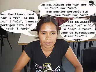 - Ilustrações de um curso de português em língua tétum publicado no jornal timorense Lia Foun em Díli
