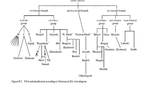 Os idiomas do norte indiano, da família indo-europeia, evoluíram do indo-ariano antigo — por exemplo, o sânscrito — através do prácrito (indo-ariano médio) na Idade Média. Não há consenso, porém, de quando surgiram as línguas indianas modernas.