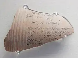 No século IV existia um sistema de escrita copta — baseado no alfabeto grego com carácteres adicionais do egípcio demótico para refletir a fonologia egípcia — que se encontra em documentos escritos em vários dialetos, como boáirico antigo, faiúmico, acmímico e saídico.[69] Nessa altura o copta emergiu como uma língua literária completa, a qual foi usada em traduções de obras literárias gregas, textos litúrgicos e obras patrísticas.[70] Entre os séculos IV e VII foram escritas em copta, sobretudo no dialeto saídico, várias obras originais como homilias, hagiografias, regras monásticas, epístolas e exortações.[69][71] Como sistema de escrita, o copta era usado para atividades do dia a dia, como inventários e transações de imobiliário, bem como em poesia.[71] Na década de 640, quando o Egito ficou sob o domínio árabe, os cristãos coptas constituíam a maioria da população. No fim do século VII os textos jurídicos podem ainda ter sido escritos em copta — por exemplo, há um protocolo bilíngue greco-árabe com uma menção a Maomé que precede um documento inteiramente escrito em copta que evoca a Trindade.[72]