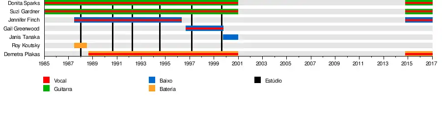 - Donita Sparks – vocal e guitarra (1985–2000, 2014-presente)