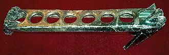 Fragmento de duralumínio, queimado e que foi recuperado dos destroços. |