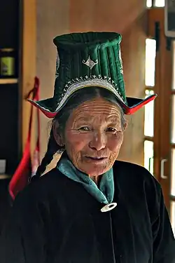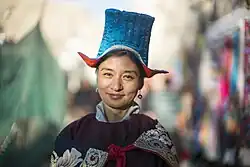 Mulher ladaque com um chapéu tradicional