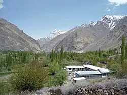 Paisagem no baixo vale do Suru, no Ladaque Oriental, perto de Purtikchay, com o Nun Kun ao fundo