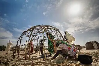 As vastas águas formadas durante o período húmido africano proporcionaram condições para o surgimento de assentamentos de pescadores à beira do lago, e o grupo étnico nilo-saariano também migrou para o lago Chade durante esse período. A agricultura também surgiu na região do Sahel nessa época.[8] Por volta de 1800 a.C., uma cultura de olaria conhecida como Gajiganna surgiu, inicialmente como pastores, mas, começando por volta de 1500 a.C., vivendo em aldeias estabelecidas nas margens do lago.[9] A descoberta arqueológica revelou gramíneas selvagens, principalmente da tribo Paniceae, e arroz selvagem, juntamente com o mais antigo milheto perolado domesticado na região do lago Chade. Um dos mais antigos milhetos perolados domesticados na África Ocidental foi encontrado na Bacia do Chade, carbonizado com gramíneas selvagens, e a sua era pode ser rastreada até cerca de 800–1000 a.C.[10]