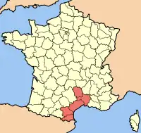 | Aude (11) Gard (30) Hérault (34) Lozère (48) Pyrénées-Orientales (66) | |