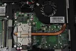 O calor residual é difícil de ser removido no espaço interno de um laptop. Os primeiros laptops usavam refrigeração passiva, isso deu lugar a dissipadores de calor colocados diretamente sobre os componentes a serem resfriados, mas quando esses componentes quentes estão bem no fundo do dispositivo, um grande duto de ar que ocupa espaço é necessário para exaurir o calor.