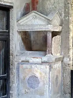 A partir dos trabalhos arqueológicos em Pompeia, é possível distinguir três formas básicas de larário:[44] nicho, edícula e pictórico.[45]