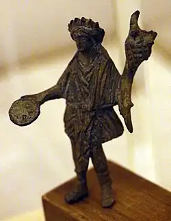 ![]() Estatueta de bronze, provavelmente da Campânia (sul da Itália), século I (Museu de Gäuboden, Straubing, Alemanha.) |
