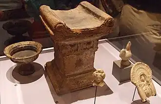 Por sua vez, com pouca ocorrência, os sacelos eram espaços a céu aberto, em peristilos e em jardins, ou também salas reservadas ao culto, com altar e outros objetos, como esculturas, fontes e árvores.[50]