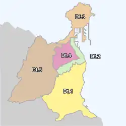 Dt5 - Tamaraceite-San Lorenzo (39.191 hab.): Disseminados de Almatriche, Los Giles, San Lorenzo, Tamaraceite y Tenoya; e bairros de Almatriche Alto, Almatriche Bajo, Cañada Honda, Casa Ayala, Ciudad del Campo, Costa Ayala, Cruz del Ovejero, Cuevas Blancas, Dragonal Alto, Dragonal Bajo, El Pintor, El Román, El Roque, El Toscón, El Zardo, Hoya Andrea, Isla Perdida, La Cazuela, La Cruz, La Galera, La Milagrosa, La Palma, La Suerte, Ladera Alta, Las Cuevas, Las Majadillas, Las Mesas, Las Perreras, Llanos de María Rivera, Lomo Corcobado, Lomo Los Frailes, Los Giles, Masapez, Piletas, Risco Negro, San José del Álamo, San Lorenzo, Siete Puertas, Tamaraceite e Tenoya.