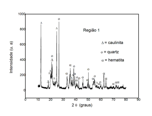 No microscópio eletrônico de varredura, com acoplamento de uma Microssonda de Energia Dispersiva de Raios-X (EDAX) os lateritos se apresentam como nas Figuras