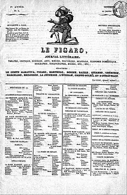 O Le Figaro foi fundado como um semanário satírico em 1826,[3][4] com o nome e lema de Le Mariage de Figaro, a peça de 1778 de Pierre Beaumarchais que zombava dos privilégios. Seu lema, do monólogo de Figaro no ato final da peça, é "Sans la liberté de blâmer, il n'est point d'éloge flatteur" ("Sem a liberdade de criticar, não há elogios verdadeiros"). Em 1833, o editor Nestor Roqueplan foi ferido durante um duelo travado com um coronel Gallois, que foi ofendido por um artigo no Le Figaro, mas se recuperou.[5] Em 1866, o Le Figaro tornou-se um jornal diário.[6] Sua primeira edição diária, a de 16 de novembro de 1866, vendeu 56 000 exemplares, com a maior circulação de todos os jornais da França. Sua linha editorial era monarquista.[7]