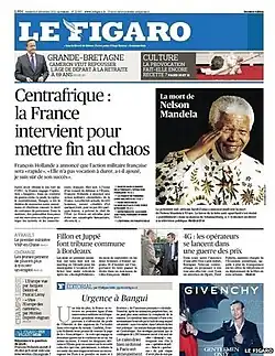 ![]() Capa da edição de 6 de dezembro de 2013. ![]() A sede do Le Figaro em Paris. | |