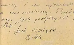 d.↑ Bolek era o personagem principal da popular série de desenhos animados infantis Bolek e Lolek. O nome do pai de Wałęsa também era Bolesław (ou Bolek, no diminutivo).