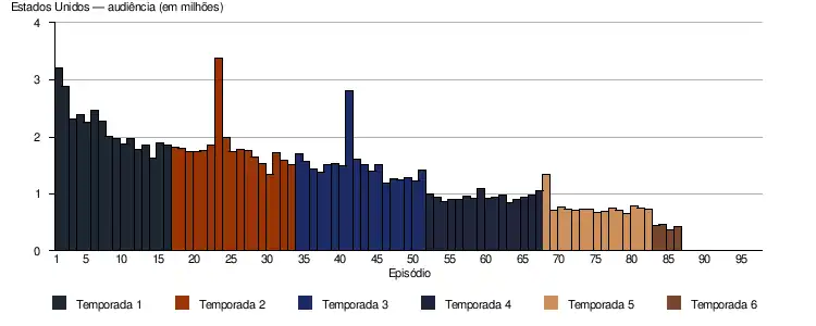 <ref>inválida; não foi fornecido texto para as "refs" nomeadas2019-2020AvgRatings - ↑ «The 42nd Annual Saturn Awards nominations are announced for 2016!». Saturn Awards. 24 de fevereiro de 2016. Consultado em 4 de março de 2016. Cópia arquivada em 27 de fevereiro de 2014