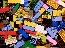 Lego ([ˈlɛɡu], Dinamarquês: [ˈle̝ːko];[1] estilizado como LEGO) é uma linha de brinquedos de construção de plástico fabricados pelo The Lego Group, uma empresa privada com sede em Billund, Dinamarca. Lego consiste em blocos de plástico interligados de várias cores, feitos de acrilonitrila butadieno estireno (ABS), que acompanham uma série de engrenagens, bonecos chamados minifiguras e diversas outras peças.[2] Suas peças podem ser montadas e conectadas de diversas maneiras para construir objetos, incluindo veículos, edifícios e robôs funcionais.[3] Modelos de Lego montados podem ser desmontados e suas peças podem ser reutilizadas para criar novas construções.[4][5]