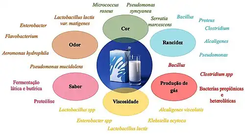 Em relação aos microorganismos pode ter até 500 000 UFC (unidade formadora de colônia/ml) antes da pasteurização e até 40 000 UFC/ml apos a refrigeração. Coliformes totais ausentes em 1/ml