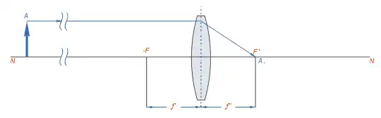 Neste caso, a imagem obtida no foco conjugado num plano focal FF, mais afastada do plano focal principal F'F ', que se estende paralelamente a um foco principal.