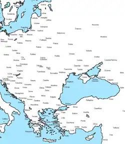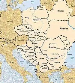Mapa de parte do Leste Europeu (em inglês).