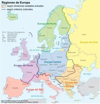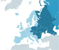 A divisão entre Europa Oriental (ou Europa do Leste) e a Europa Ocidental ficou bem visível depois da divisão deste continente entre o bloco socialista e o capitalista, delimitada pela simbólica Cortina de Ferro. É considerada a Europa Oriental desde a fronteira germano-polonesa (germano-polaca), Hungria, Eslovênia, Croácia; até os montes Urais, divisão natural entre Europa e Ásia. O termo delimita duas regiões complementares, já que existiam duas "Europas Orientais"; uma com conotação geográfica e outra, política (do qual excluímos a Grécia), equivalendo à antiga área de influência da URSS.