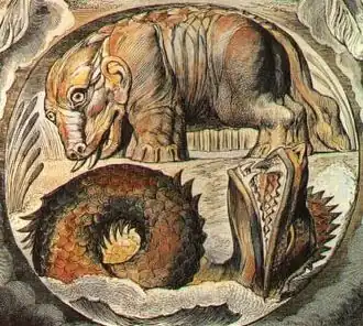 A origem histórico-mitológica de tais animais descritos na Bíblia é uma questão um tanto obscura. Ambos os animais têm sido associados a algumas sagas, e o Leviatã talvez esteja associado ao "Tiamat" mesopotâmico. Os historiadores e teólogos da Bíblia não relacionam esses animais ao que poderia ser um mito político, ao qual Hobbes se refere (Schmitt, 1938: 6).[4] O Leviatã também aparece na Bíblia sob a forma do maior dos animais aquáticos, como um crocodilo ou então na forma de um enorme peixe, uma baleia.[5][2] O behemoth, como animal terrestre representado sob a forma de um hipopótamo.