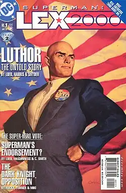 Luthor foi eleito presidente dos Estados Unidos no ano 2000. Sua campanha foi baseada numa plataforma progressista, com Lex prometendo avanço tecnológico idêntico ao de Metrópolis para todo o país. Sua vitória foi garantida pela impopularidade do governo anterior, que se devia a sua incapacidade em reconstruir Gotham. O que ninguém sabia na época é que Luthor estorvou a reconstrução propositalmente. Quando Bruce Wayne descobriu sua ligação com o incidente rompeu todos os contratos militares das Empresas Wayne com o Governo, em protesto contra a eleição de Luthor. Luthor se vingou encomendando o assassinato da namorada de Wayne, Vesper Fairchild, e incriminando-o. A popularidade de Luthor como presidente disparou quando ele coordenou uma ação conjunta entre o exército norte-americano e os super-heróis da Terra contra o invasor alienígena Imperiex. Luthor já sabia da iminência da invasão alienígena, mas friamente se omitiu de avisar os super-heróis com antecedência.