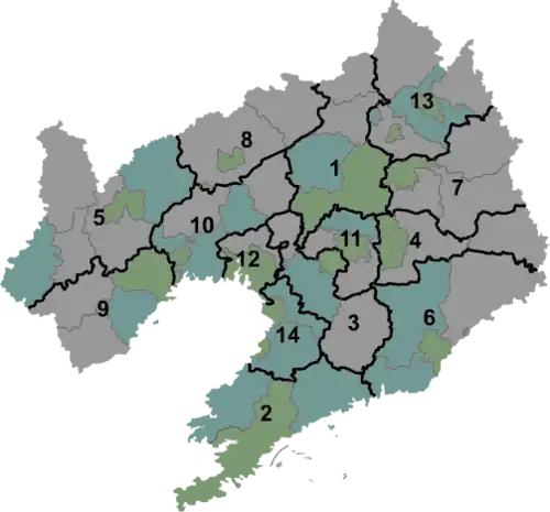 14 Yingkou 营口市 Yíngkǒu shì Distrito de Zhanqian Prefeitura com nível de cidade