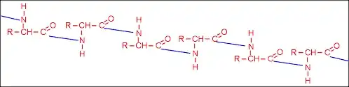 As estruturas limitam a forma de ressonância. A ligação peptídica é estabilizada por efeito mesomérico e não pode sofrer uma rotação livre, uma propriedade muito importante para determinar a conformação tridimensional de cadeias polipeptídicas. Isto implica ressonância da ligação peptídica. Nesta estrutura, segue-se que os dois grupos R aminoácidos são alternados em cada lado da ligação peptídica.[1]