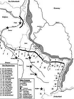 A Linha Maginot (em francês: Ligne Maginot)[a][1] nomeada em homenagem ao Ministro da Guerra francês André Maginot, é uma linha de fortificações de concreto, obstáculos e instalações de armas construída pela França na década de 1930 para impedir a invasão da Alemanha Nazista e forçá-la a contornar as fortificações. Era imune à maioria das formas de ataque; consequentemente, os alemães invadiram pela região dos Países Baixos em 1940, passando-a para o norte. A linha, que deveria ser totalmente estendida em direção ao oeste para evitar tal ocorrência, foi finalmente reduzida em resposta às demandas da Bélgica. De fato, a Bélgica temia que fosse sacrificada no caso de outra invasão alemã. Desde então, a linha se tornou uma metáfora para esforços caros que oferecem uma falsa sensação de segurança.[2]