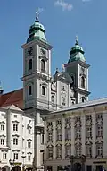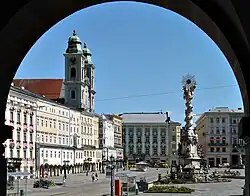 Landhaus: A casa de campo foi construída no século XVI e é a sede do governador, o parlamento da Alta Áustria e o governo da Alta Áustria. Johannes Kepler ensinou aqui por mais de 14 anos.[17]